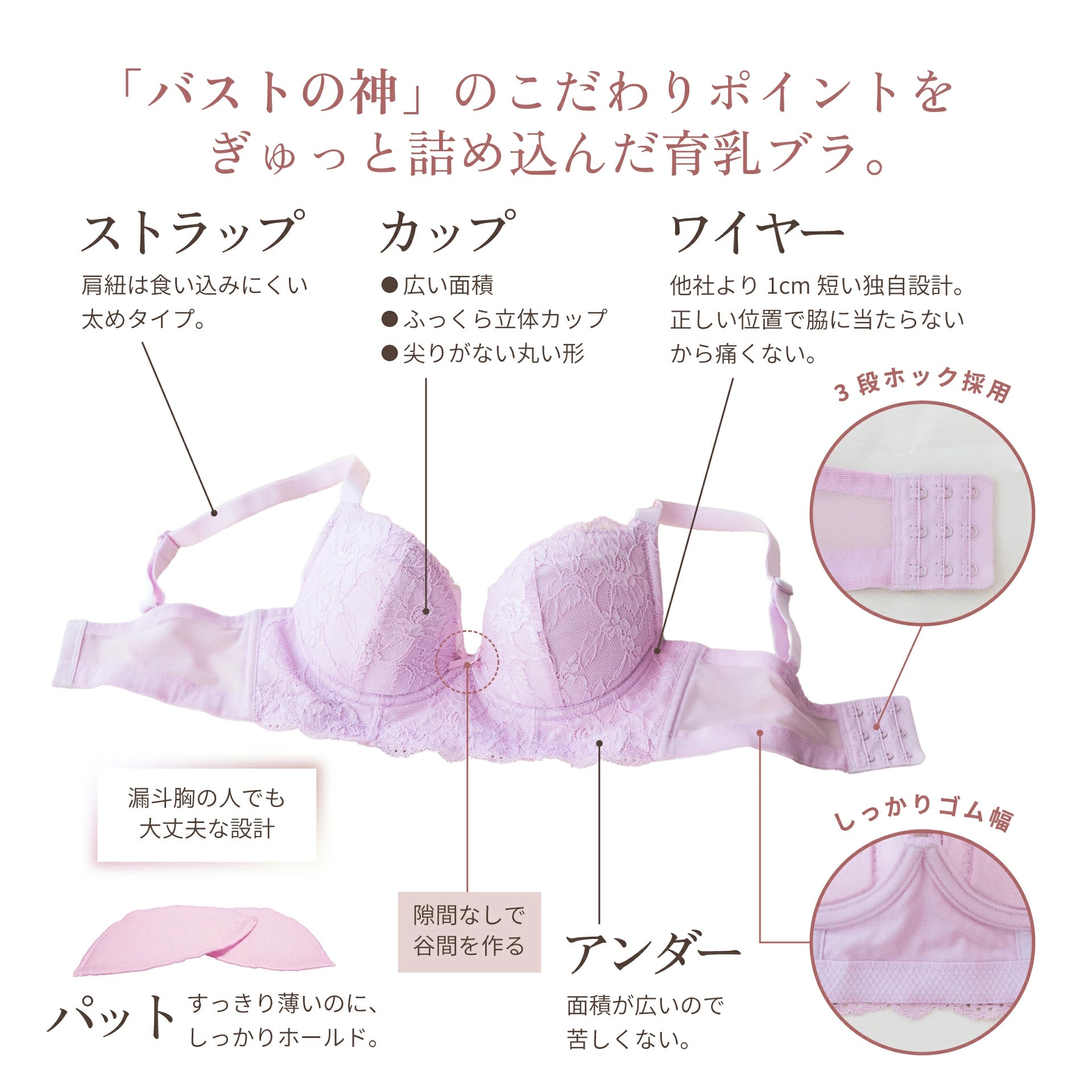 細部にまでこだわりを詰めた、理想的なバストの形を作り出す育乳ブラ。